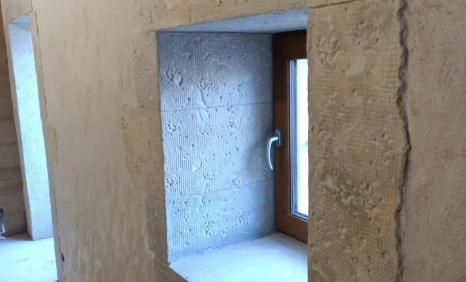 - Technique : Enduit taloché puis gratté à la truelle et imitation pierre