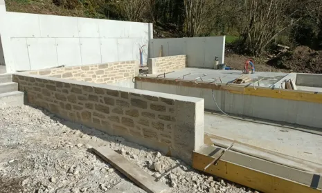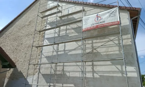 Rénovation d'une vieille ferme en pierre avec un sous-bassement en enduit gratté a l'ancienne et passe d'un hydrofuge pour protéger l'ensemble des intempéries.